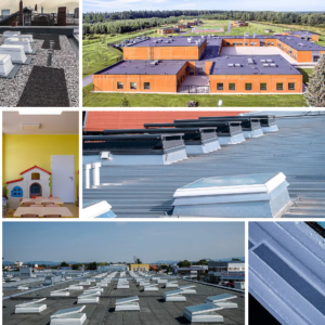 Okno dachowe płaskie do budynków administracyjnych, edukacyjnych lub mieszkalnych.